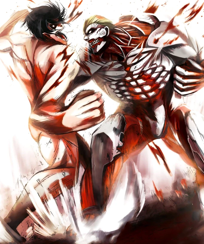 It is revealed that Reiner Braun and Bertolt Hoover, two of Eren's comrades, are the Armored Titan and Colossal Titan, respectively. They betray the group and kidnap Eren.